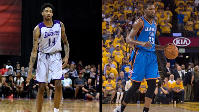 Durant even went so far as to add that he thinks Ingram is further along at this age than he was as a teenager, telling reporters, “He’s a little bit more fluid than I was, as far as skill-wise, a little more advanced than I was at that time. I was just running, jumping, shooting threes. But, he could put the ball on the floor, change directions, get to the rim, shoot the pull-up three, so that stuff started to come a little later on for me, but he’s a little farther along than I was.”