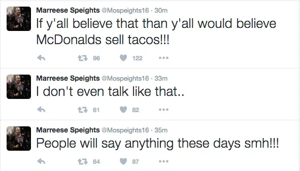 Speights has seemingly denied making the comments, posting a series of tweets shortly after the story was released.