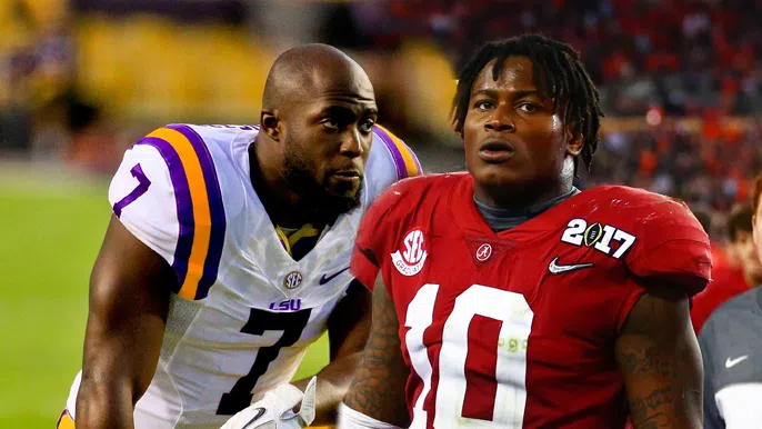 Trade back to No. 6: Leonard Fournette (RB, LSU): I’m starting my 49ers Mock Draft 2.0 with a trade back with the New York Jets. I’m trading them No. 2 for No. 6 and New York’s picks in rounds 2, 4, and 7. I think the Jets really want Mitchell Trubisky and are willing to go get him more than Cleveland. With the 6th pick in round one, I’m drafting LSU’s powerful running back Leonard Fournette. I think he’s one of the safest players in the draft. Fournette will take pressure off of the 49ers passing game for a long time. He’s the dynamic offensive weapon that this offense desperately needs. He’s a plug and play week one starter, offensive rookie of the year candidate. Added plus, Fournette grew up as a 49ers fan.