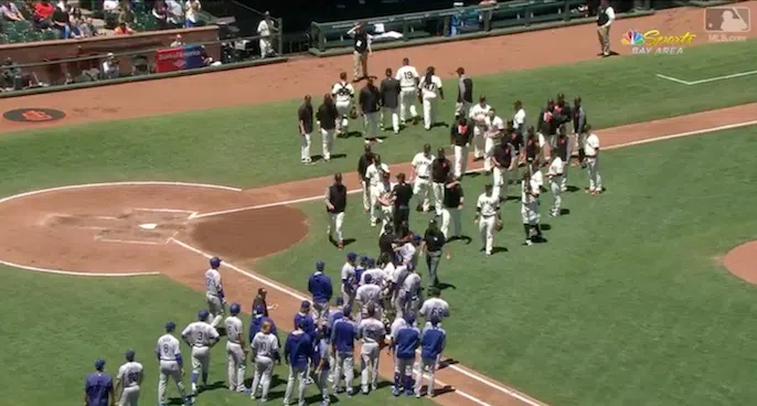 After Yasmani Grandal flew out to end the top of the 3rd inning in Wednesday’s series finale between the Giants and Dodgers, he and Giants’ pitcher Johnny Cueto began to exchange words. Both benches emptied, which is a common occurrence any time these two teams meet up. There hasn’t been a major incident between the Giants and Dodgers in recent years, but there’s no love lost in the rivalry.