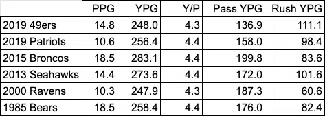This 49ers defense matches up with many of the historically-good defenses of the last 30 years, although they are also joined by this year’s New England Patriots.