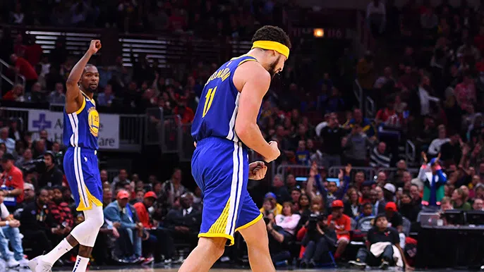 Thompson’s record-tying trey came with 7:14 in the third. Both teams had to wait a few more minutes for the money ball, coming with 4:55 left, which made it 113-69.