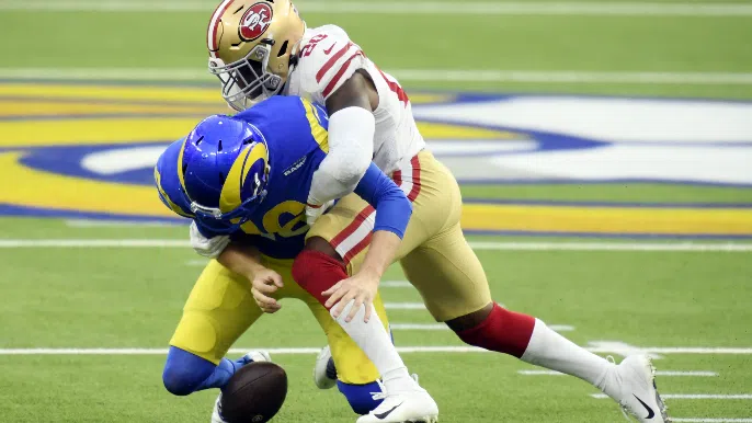 Probably (definitely) haven’t talked about Kevin Givens enough – split a pair for the TFL and jumped on the Jimmie Ward-forced fumble #49ers pic.twitter.com/u7Av3Cc4bv