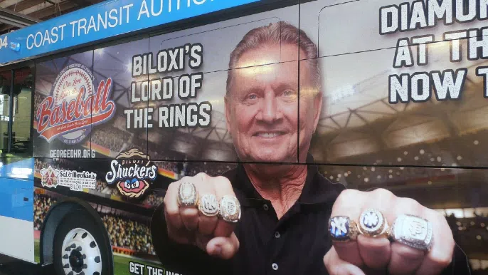 Years prior, Vincent Creel, who works with the City of Biloxi, called Elder and asked if they could display his rings at a showing at the city museum. They wanted to highlight baseball achievements from the area — they would have a Will Clark jersey, too, because he played for Mississippi State — plus several more attractions. Elder asked about their insurance first, but agreed to lend his history to the exhibit. They asked if he could come down for a photo shoot, planning to make his image into a life-size cutout so visitors could see him and his rings.