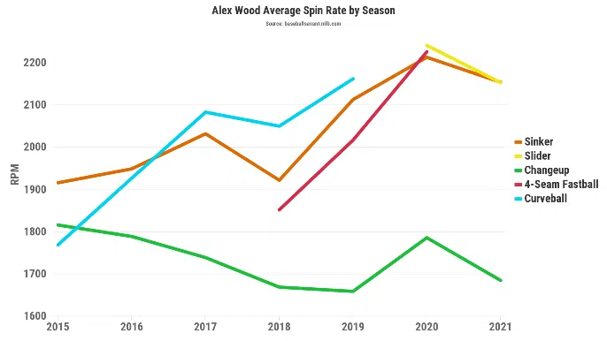 Wood said he is not a pitcher whose rates have changed much during his career. Courtesy Baseball Savant, here is a look at his averages, which suggested peaks in 2020, when he was with the Dodgers (albeit in a very short season). His spin rates have been down this season, during which he has a 4.09 ERA after allowing six runs (four earned) in three innings to Philadelphia.