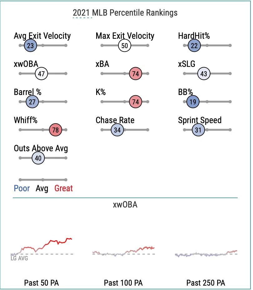 And remember: Solano isn’t exactly a slugger that stepped up to the plate and strike fear in A’s fans. To go along with his below average hard hit rate, his barrel rate (27th percentile) and average exit velocity (23rd percentile) project him as a contact hitter.