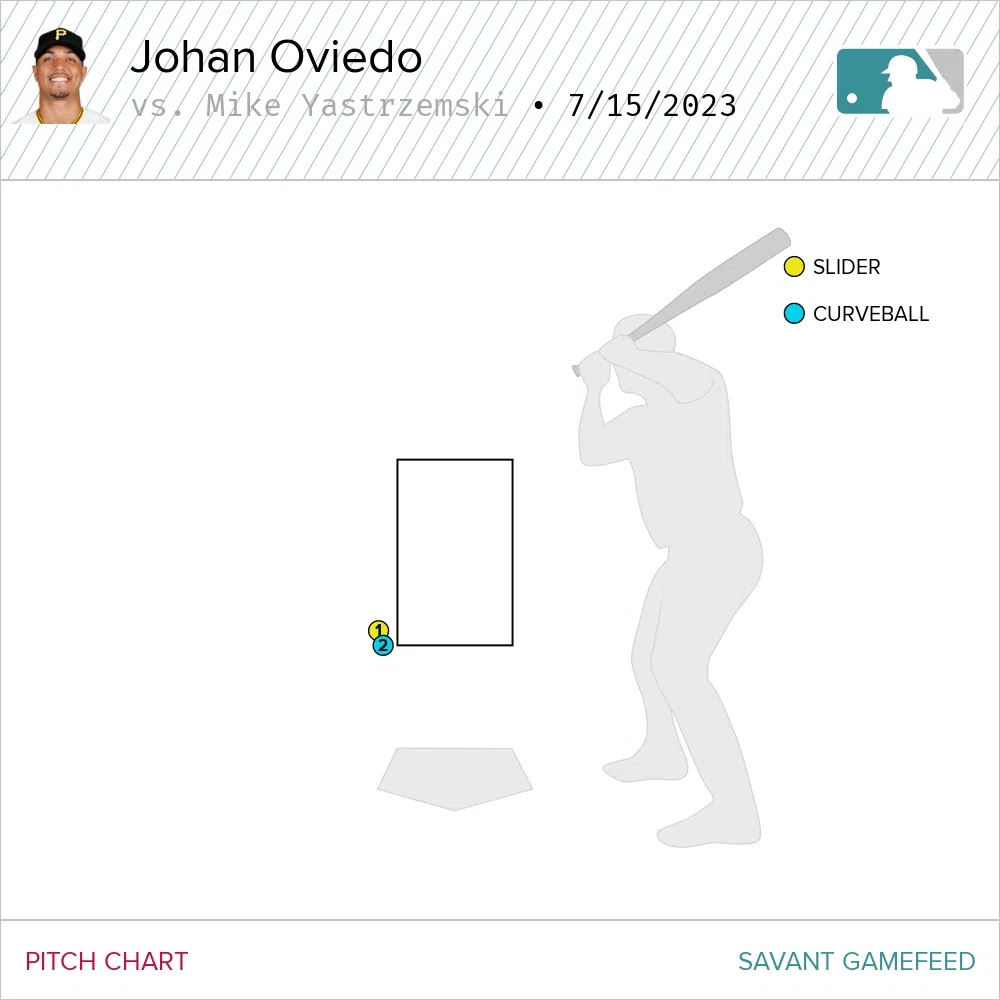 His next opportunity came in the top of the sixth with runners on first and second. Oviedo was gifted a borderline strike to start the at-bat, and Yastrzemski chased the next pitch in the same spot for a dribbler to end the inning.