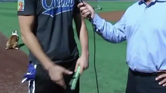 Klay Thompson’s dog lets loose on field at Dodger Stadium