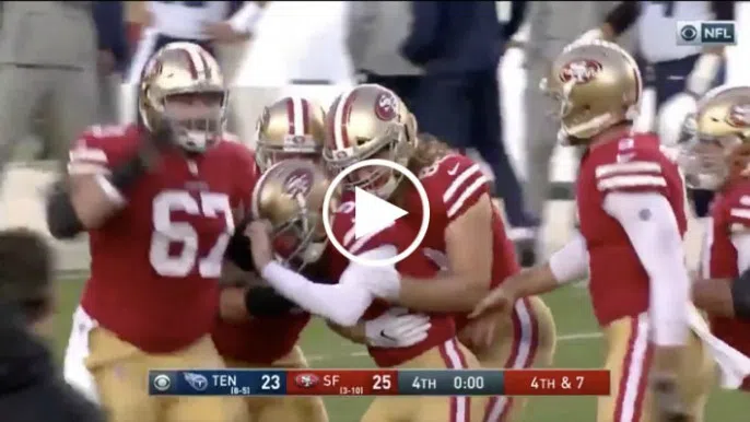 Down 23-22, Jimmy Garoppolo and the 49ers offense took the field at their own 25 yard line with 1:06 remaining in Sunday’s game against the Titans. Six plays and a minute later, 49ers kicker Rob...