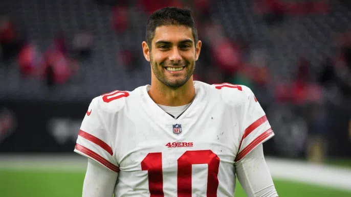 When the 49ers emerge from the tunnel and ran onto the field, quarterback Jimmy Garoppolo might be the only player who does so without a helmet. When captured by Fox cameras on Sunday in Houston, Garo...