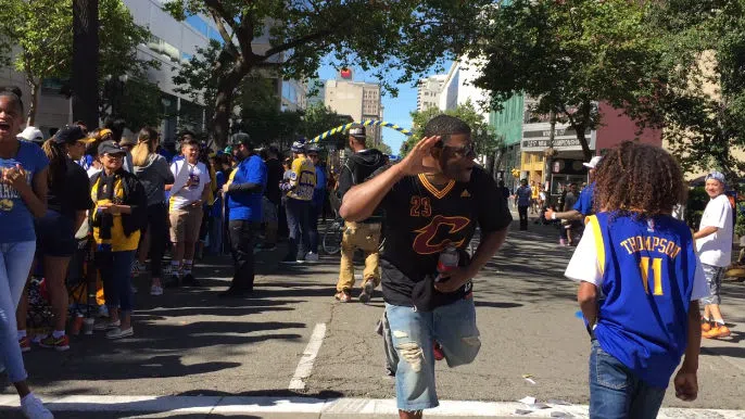 Cavs fan wearing LeBron jersey booed at Warriors parade