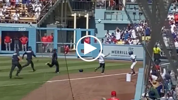 Dodgers ball girl takes out fan who ran onto field during game