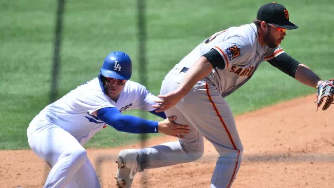 Darin Ruf tags Joc Pederson out. / Gary A. Vasquez-USA TODAY Sports LOS ANGELES — Logan Webb saw what he needed to see. He didn’t need to keep watching. The Giants starter strutted off the...